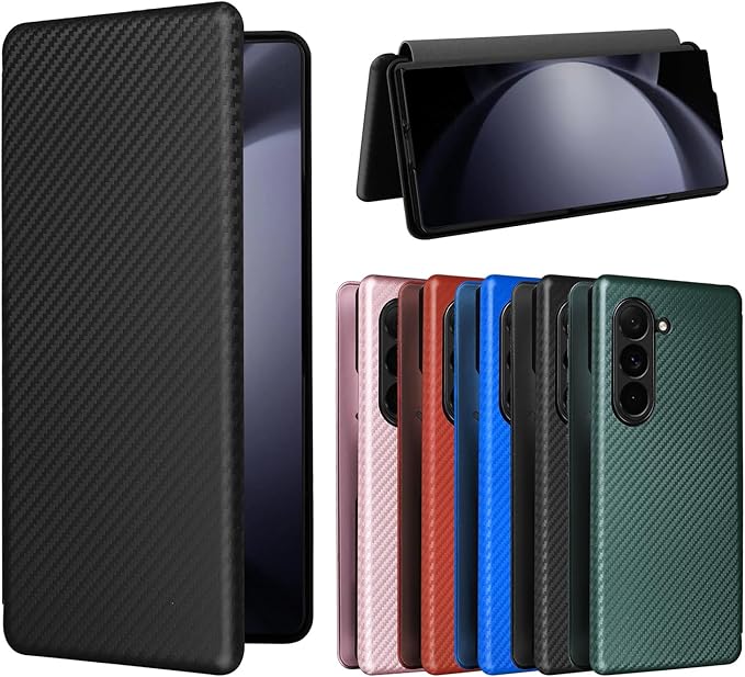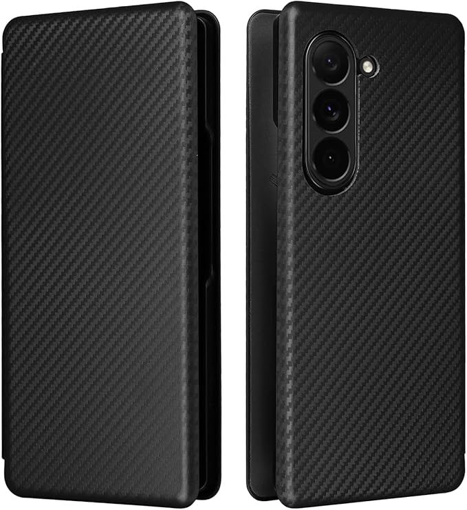 Pelanty for Galaxy Z Fold7 ケース手帳型 炭素繊維調 SC-56F SCG34 携帯カバー 背面 軽量薄型 財布型 カード収納 サムスン ギャラクシー Z フォールド7 5G 8インチ スマホケース マグネット ストラップ付き 耐衝撃 全面保護-ブラック