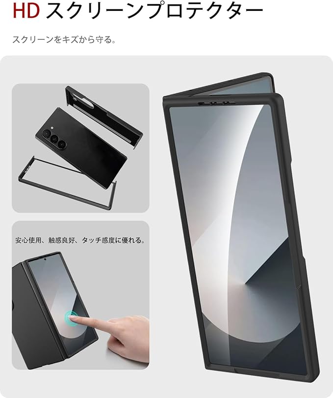 【強化フィルム内蔵】この Z フォールド 7 の高品質ケースには、専用の強化ガラススクリーンプロテクターが付属しています。超スリムで高い透明度を持つ強化ガラスは、画面の鮮やかさと細かい表示を最大限に保ち、指で操作する際の触感が滑らかで、タッチ操作も高精度に応答します。