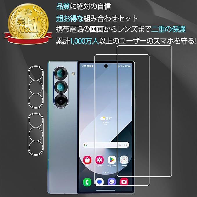 日本素材製 Galaxy Z Fold 7 用 高透過率 ガラスフィルム カメラフィルム 強化ガラス カバー 簡単貼り付け 保護フィルム【2+2枚セット】