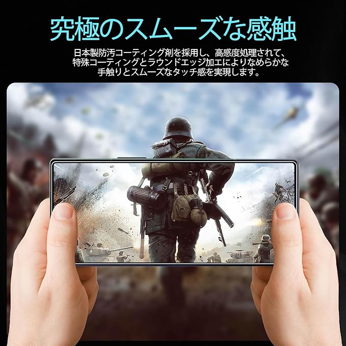 【指紋防止、高感度タッチ】ガラスフィルムには撥油コーティングが施されており、指紋や汚れなどに強くなめらかな操作感を実現、付着した汚れなどは簡単に拭きとれます。こちらは高耐久撥油コーティングが施され、つるつるな滑り感を実現!ゲームしても渋くなし!