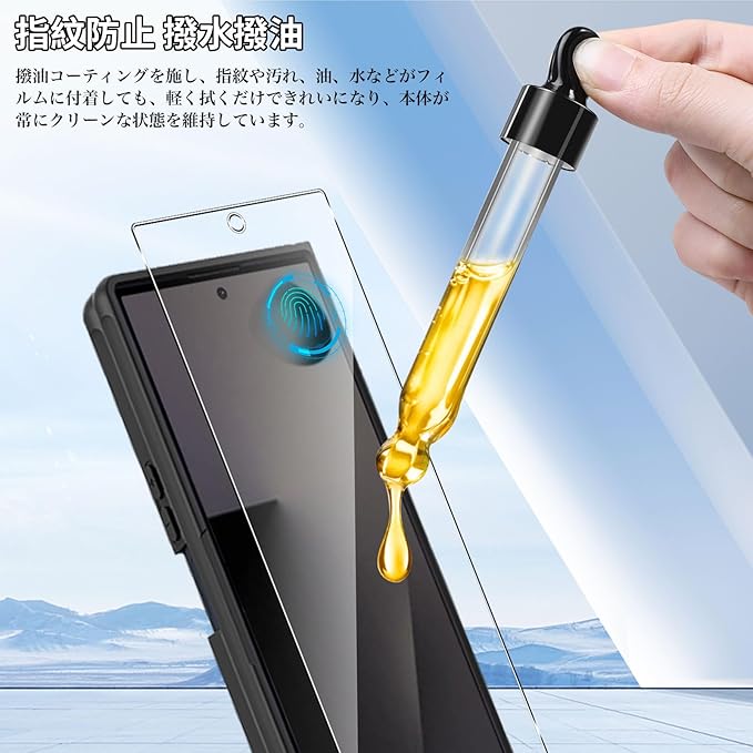 【汚れに強い】撥水・撥油加工が指紋や皮脂の付着を防ぎます。フィルムの表面には様々な特殊加工が施されており、油分、ほこり、指紋に強く、スマートフォンを常に清潔な状態に保ち、見た目の美しさや画面体験にも影響を与えません。頻繁にスマホを拭かないようにします。