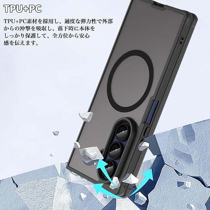 【高品質素材と細やかな保護設計】当ケースは厳選された PC と TPU 素材を使用しており、一般的な素材より耐黄変性、耐熱性、耐スクラッチ性に優れ、高い実用性と耐久性を備えています。保護設計には配慮が行き届いています。カメラ部分はカメラレンズより 1.2mm 高く、画面部分は画面より 1mm 高く設計されており、スマホのレンズと画面が地面に接触するのを防ぎます。