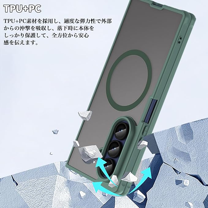 【高品質素材と細やかな保護設計】当ケースは厳選された PC と TPU 素材を使用しており、一般的な素材より耐黄変性、耐熱性、耐スクラッチ性に優れ、高い実用性と耐久性を備えています。保護設計には配慮が行き届いています。カメラ部分はカメラレンズより 1.2mm 高く、画面部分は画面より 1mm 高く設計されており、スマホのレンズと画面が地面に接触するのを防ぎます。