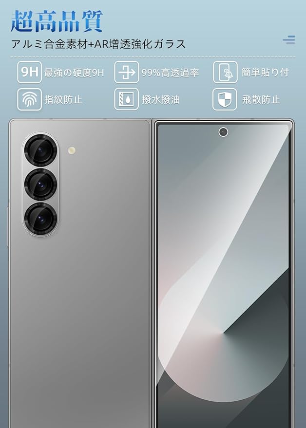 【超薄型 高感度タッチ 指紋認証対応】 Galaxy Z Fold7 に特製ガラス保護フィルムとカメラフィルムです。高耐久性防汚のフィルムに特殊コーティングにより指紋や汚れが付きにくくなっています。超薄型保護フィルムは鮮明な99%の高透過率、自然な見た目です。 Fold6ガラス縁をラウンド加工することにより滑らかな手触りを実現。3Dラウンドエッジ加工により、横からの衝撃を受け難くします。厚さ0.2mm、何も貼っていないような感じ、手触り感が優れており画面の美しさをお楽しみいただけます。擦り傷防止の透明なカバーで本体の美しさを妨げません、本体とピッタリ密着して違和感がない一体感がすごく格好いいです。液晶保護ガラスフィルムは高品質な専用接着剤を採用し,0.01 mmの超音波フィルムを採用しており、装着後に指紋を再入力することで、完璧な指紋ロックを実現します。取り付け後の指紋の位置に気泡がないように注意してください。