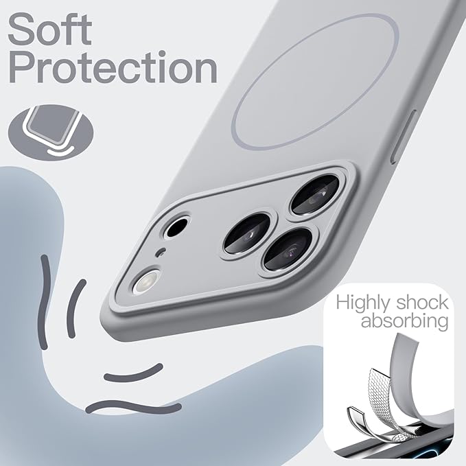 JETech iPhone 17 Pro Max 6.9インチ用 マグネットシリコンケース MagSafeに対応 シルキーソフトタッチ 衝撃吸収スマホカバー カメラレンズ保護 (グレー)