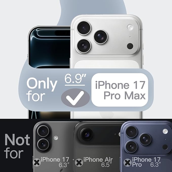 [互換性] iPhone 17 Pro Max 6.9インチ専用設計。注:iPhone 17 / Air / 17 Proには対応していません。正確なカットアウトにより、スピーカー、カメラ、ボタン、その他のポートに完全にアクセスできます
