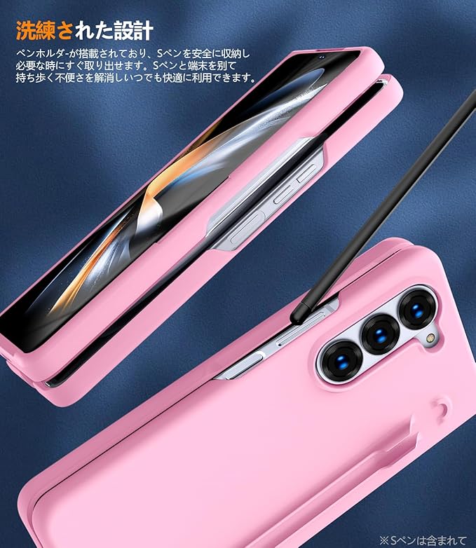 Galaxy Z Fold7 用 Sペン収納 ケース 純正 ペン付き シリコン スリム 人気 薄型 レンズ保護 指紋防止 擦り傷防止 サムスン ギャラクシー Z フォールド7 5G スマホケース ピンク Q-FGDB-Fold7-11-CP