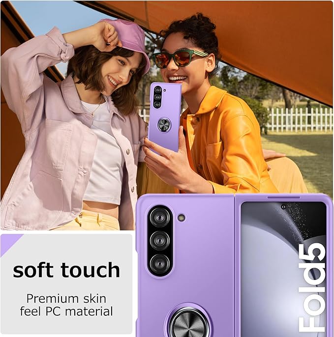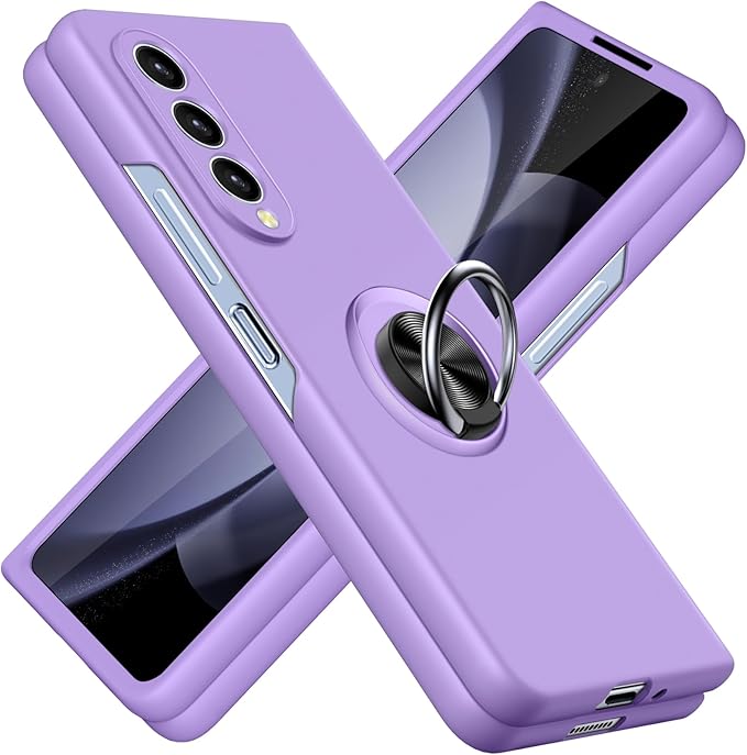 Galaxy Z Fold3 用ケース リング付き スタンド機能 レンズ保護 一体型 SC-55B SCG11 スマホケース ハード PC素材 マットな質感 サムスン ギャラクシーZ Fold3 5G 用ケース 衝撃吸収 シンプル スマホケース 紫 J07-07