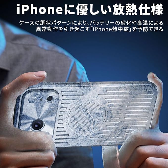 【放熱冷却機能】ケース 放熱メッシュ構造、長時間の使用で熱くなったアイフォンを効果的に冷却できます。この効果は、メッシュ構造によりエアフローを促進しiPhoneから出る熱の拡散を促進します、放熱を促すことによって得られ、iPhoneの動作パフォーマンスにも良い影響を与えま。ゲーミングスマホの愛好家やブロガーにオススメします ゲーミングスマホケース