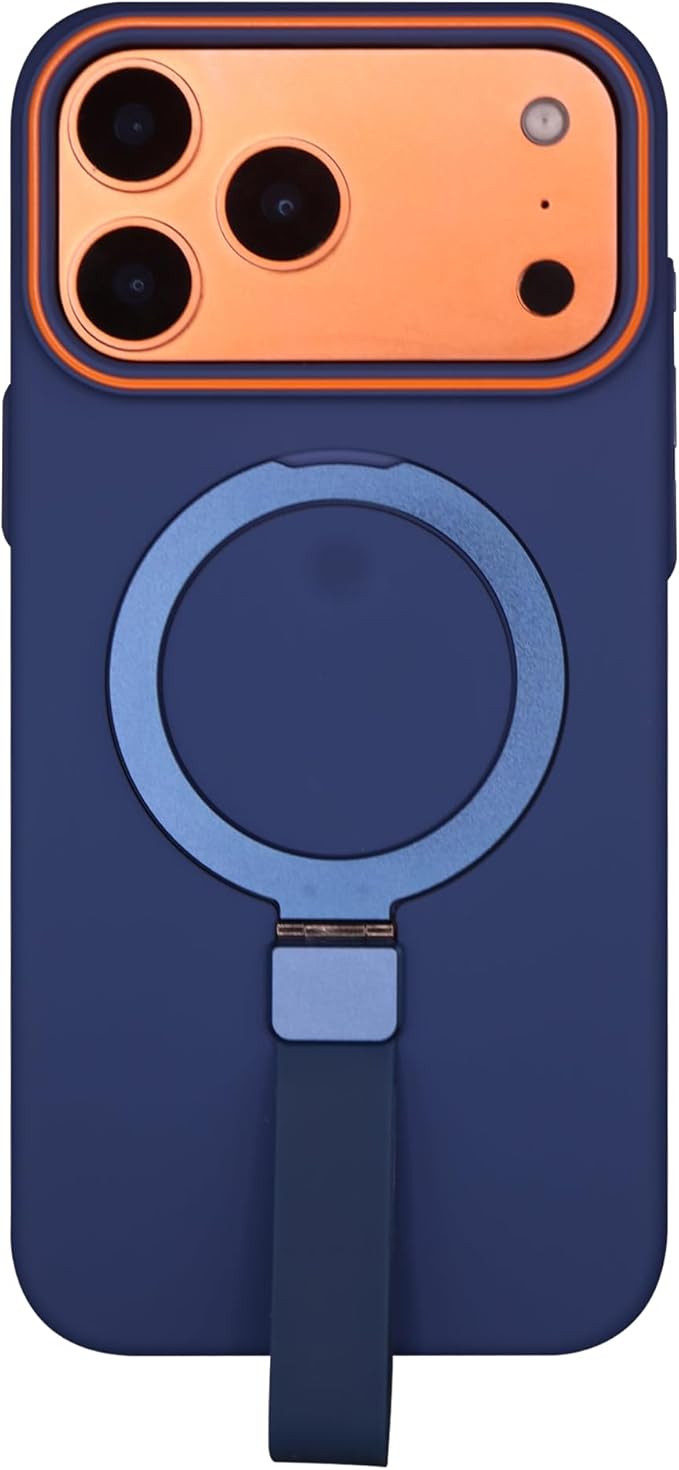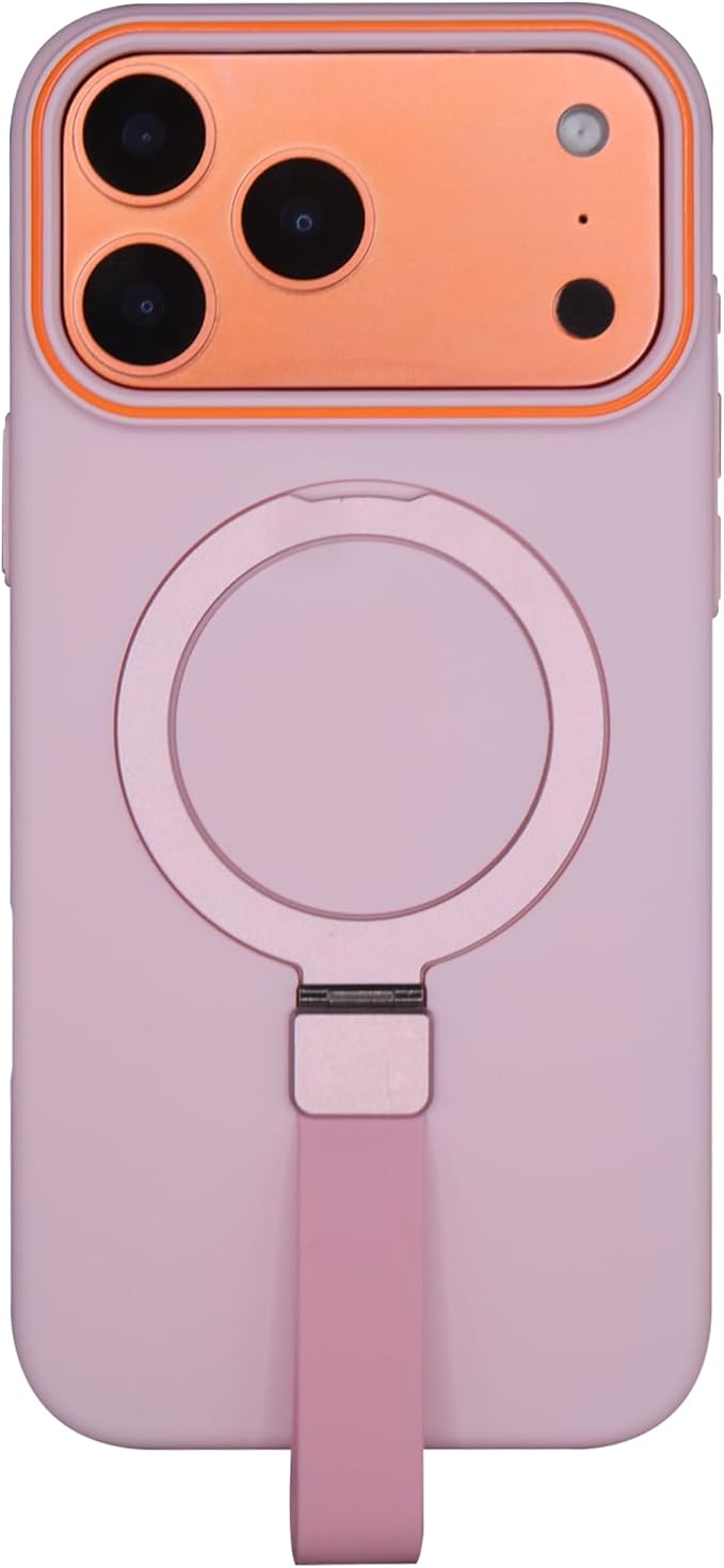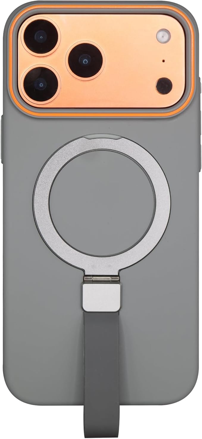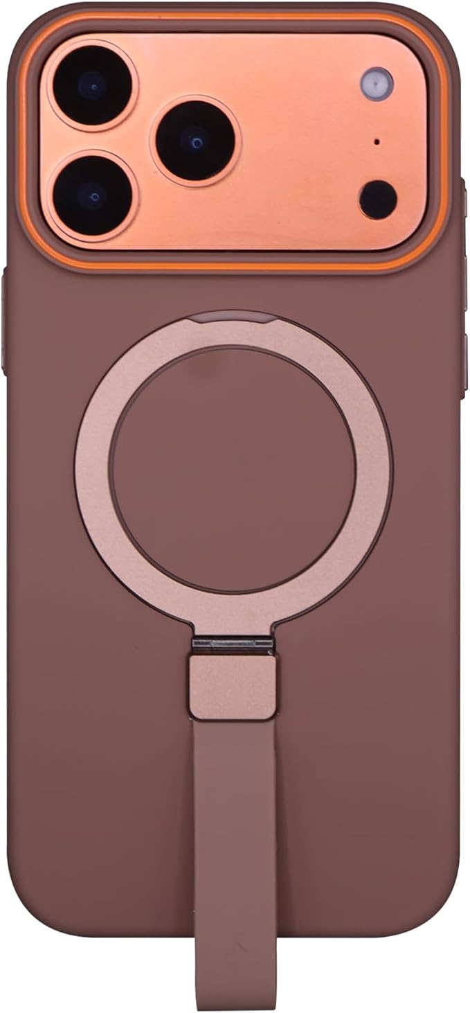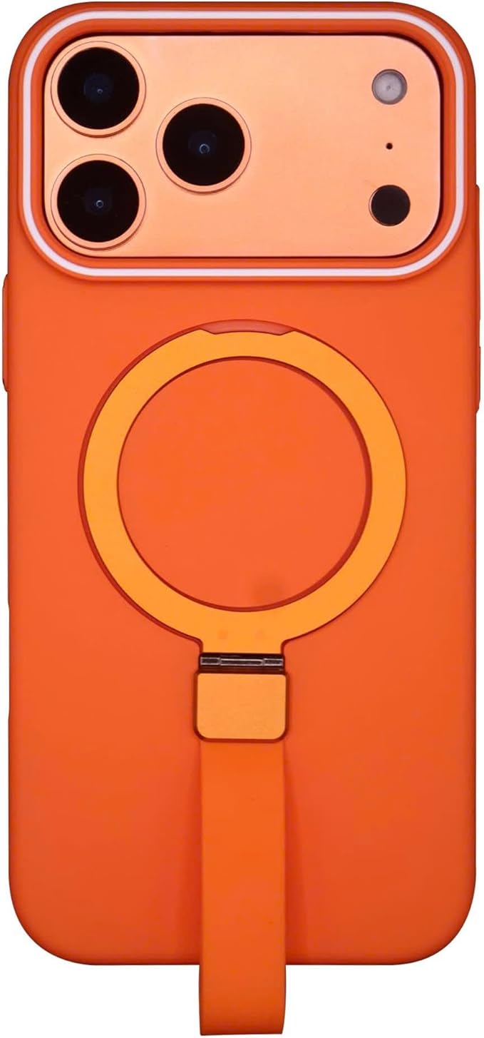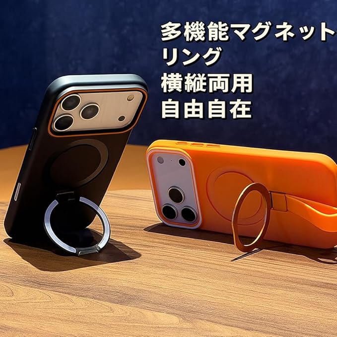 iPhone 17 Pro Max 用 ケース MagSafe対応 リング付き ストラップホルダー 折りたたみスタンド 耐衝撃 マットカラー ワイヤレス充電対応 (オレンジ)