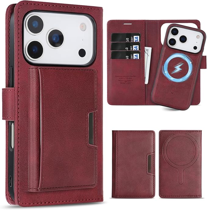 ALANTOP iPhone 17 Pro Max 用ケース Magsafe 対応 あいふおん17 Pro Max 用 ケース 手帳型 マグセーフ 耐衝撃 【分離式3 in 1】 カード収納 ワイヤレス充電対応 フェイクレザー