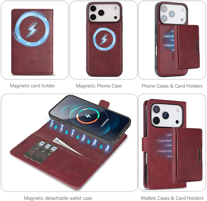 iPhone 17 Pro Max 用ケース Magsafe 対応 あいふおん17 Pro Max 用 ケース 手帳型 マグセーフ 耐衝撃 【分離式3 in 1】 カード収納 ワイヤレス充電対応 フェイクレザー