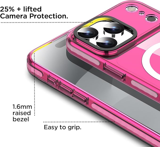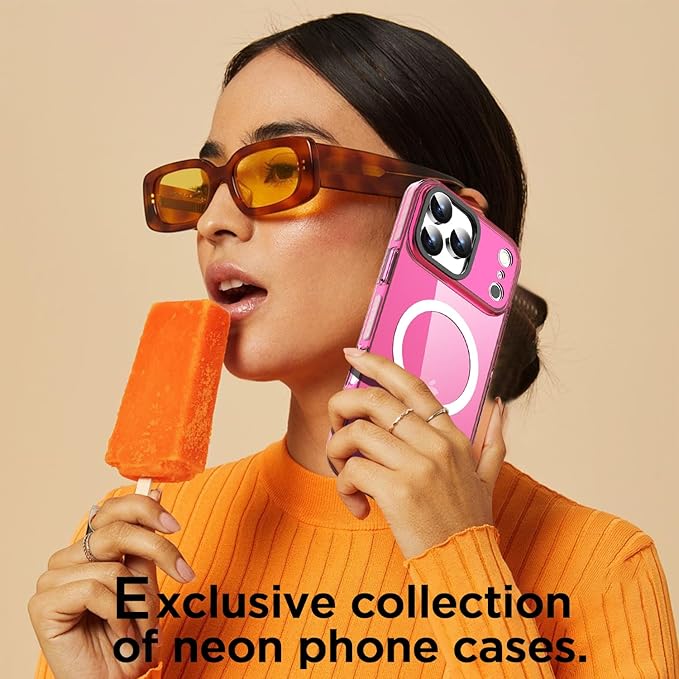AICase ネオンホットピンク クリア iPhone 17 Pro Max 用 スマホケース Magsafe対応、トレンド感あふれる女性向け、ガーリーで洗練された美しくプレッピーなカラフルカラーとキュートなレトロで明るい保護ジェリーオーラカバー