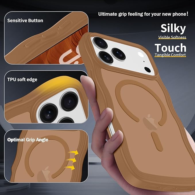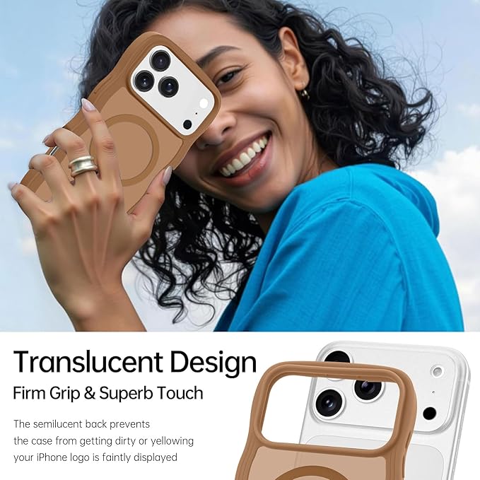 Lafunda iPhone 17 Pro Max 用 ケース MagSafe対応 ウェーブ 滑り止め 半透明 マグネットカバー かわいい おしゃれ 耐衝撃 薄型 軽量 ワイヤレス充電 アイフォン 17 Pro Max 用 スマホケース (ブラウン)