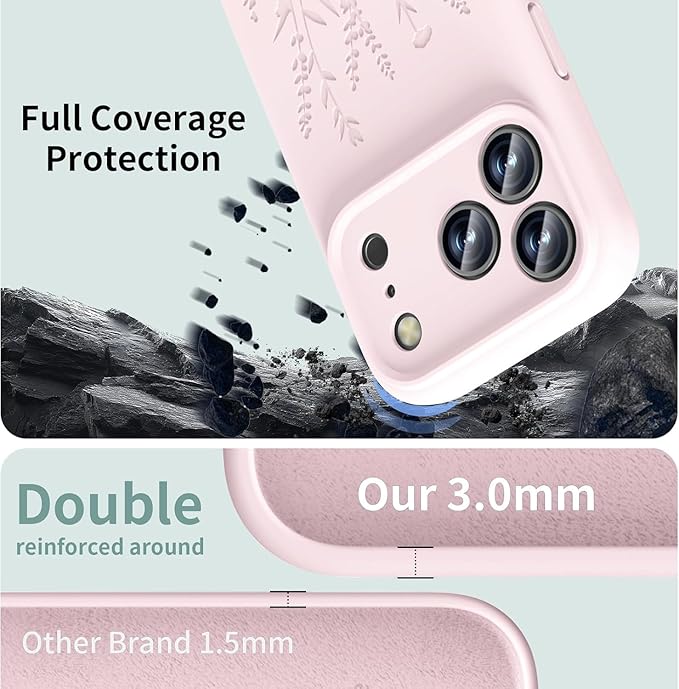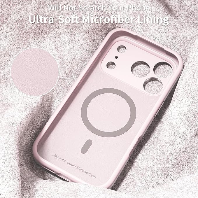 iPhone 17 Pro Max 用 ケース MagSafe対応 全面カメラ保護 液体シリコン いPhone17 Pro Max ケース マグネット搭載 マグセーフ対応 レー ザー彫刻 女性 女の子 かわいい おしゃれ 磁気吸着 滑り止め 耐衝撃 (chalk pink)