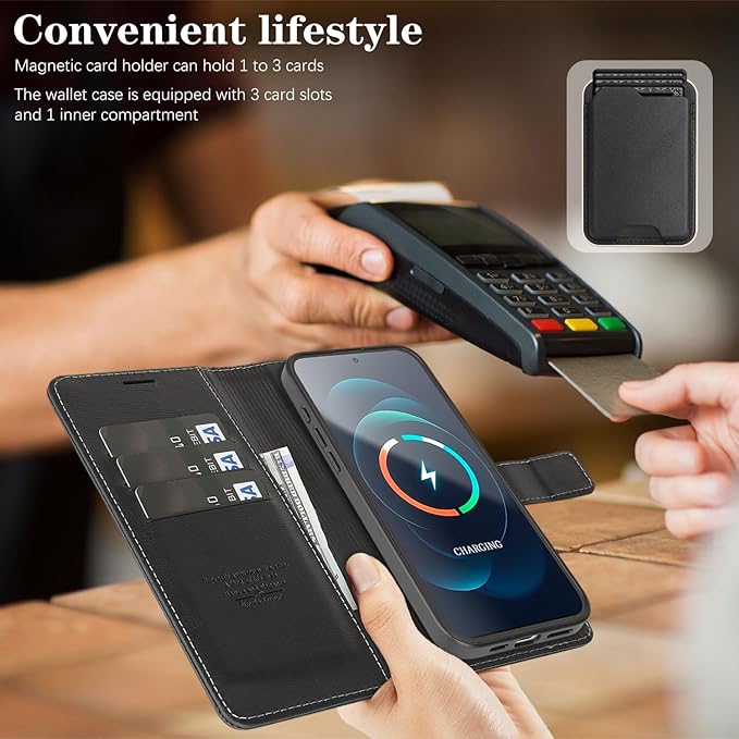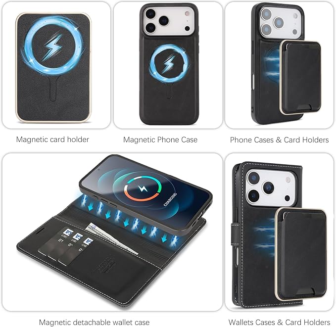 iPhone 17 Pro Max 用ケース 手帳型 MagSafe対応 3in1 着脱式 RFIDブロッキング フリップスタンド付き 多財布 カードスロット 男女兼用 PUレザー 旅行・日常用