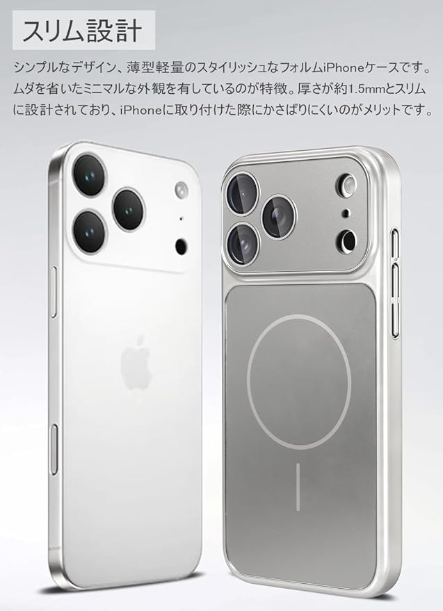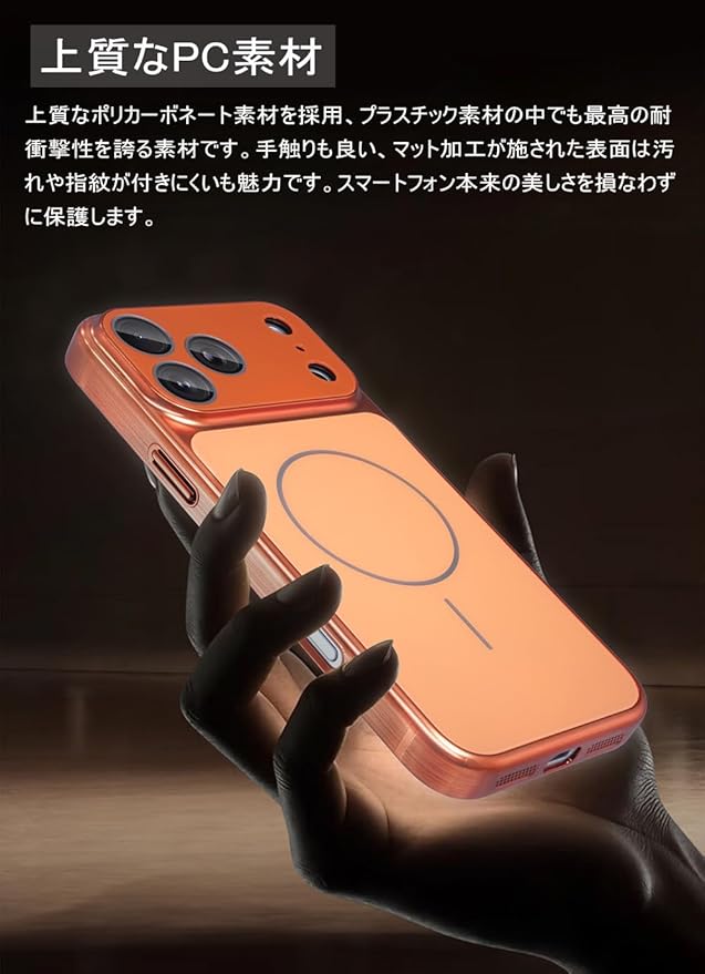 【薄型軽量・上質なPC素材】シンプルなデザイン、薄型軽量のスタイリッシュなフォルムiPhoneケースです。ムダを省いたミニマルな外観を有しているのが特徴。厚さが約1.5mmとスリムに設計されており、iPhoneに取り付けた際にかさばりにくいのがメリットです。本製品は上質なポリカーボネート素材を採用、プラスチック素材の中でも最高の耐衝撃性を誇る素材です。手触りも良い、マット加工が施された表面は汚れや指紋が付きにくいも魅力です。スマートフォン本来の美しさを損なわずに保護します。
