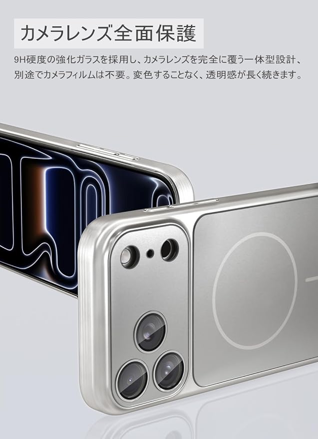 【カメラレンズ全面保護】9H硬度の強化ガラスを採用し、カメラレンズを完全に覆う一体型設計、別途でカメラフィルムは不要。変色することなく、透明感が長く続きます。