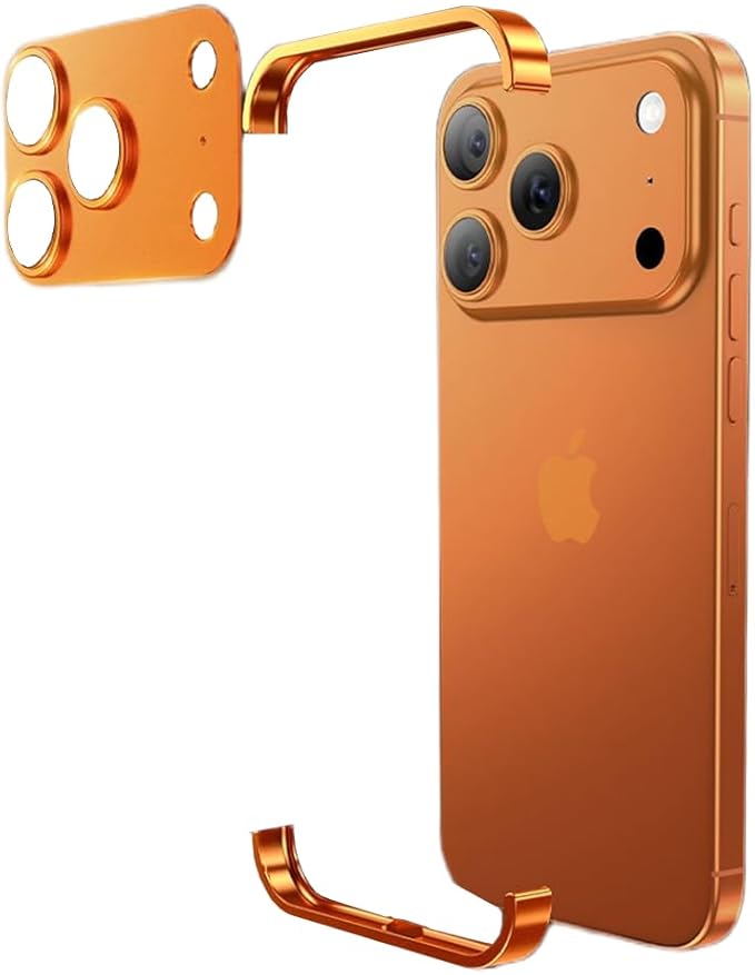 iPhone 17 Pro Max ケース 3 in 1 上下部のアルミ バンパー + カメラ保護カバー付き MagSafe 対応 ワイヤレス充電 いphone17promax ケース 軽量 薄型 超強放熱 衝撃保護 男女兼用 オレンジ