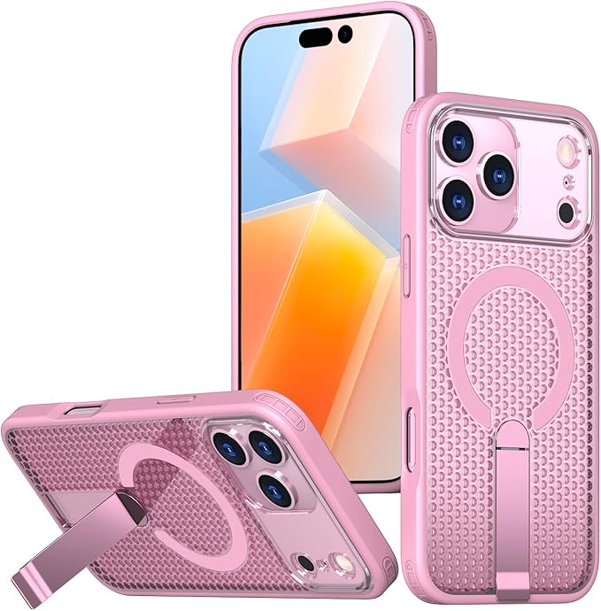 放熱 iPhone 17 Pro Max 対応 ケース Magsafe対応 縦置き スタンド付き アイフォン17promax 用 カバー メッシュ 放熱ケース 耐衝撃 薄型 軽量 ,ピンク