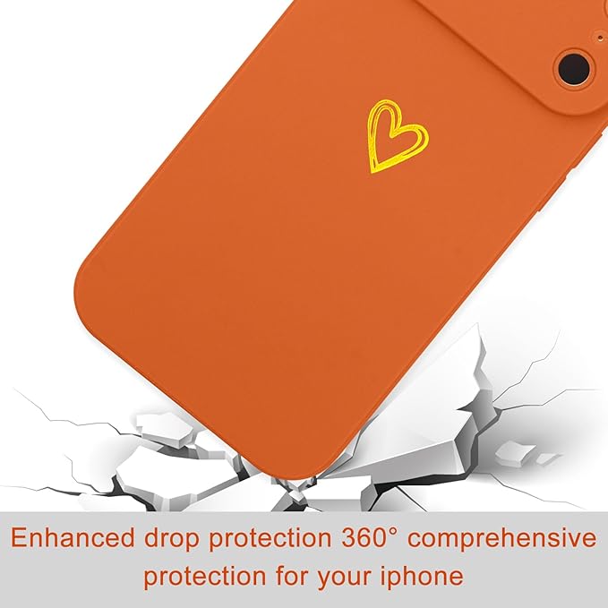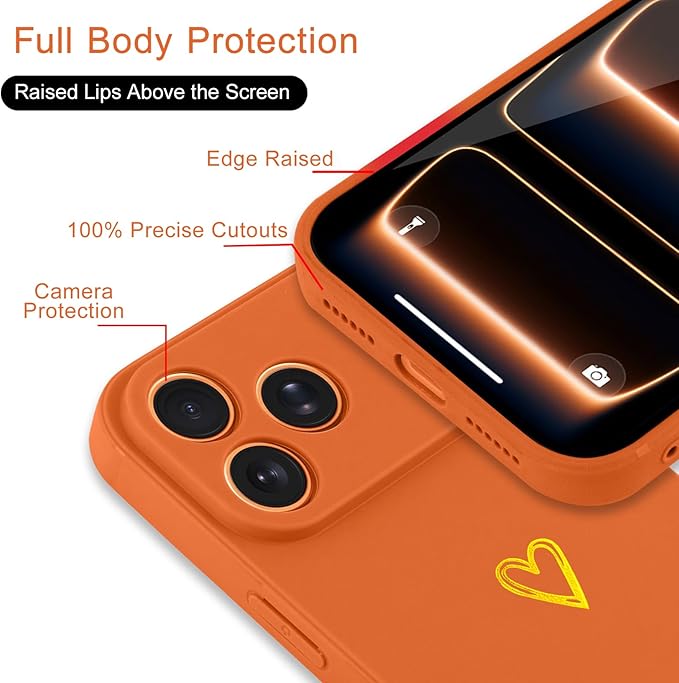 iPhone 17 Pro Max 用 ケース 可愛い ハート おしゃれ かわいい カメラ保護 シンプル スマホケース 女性 女の子用 軽量 耐衝撃 ストラップホール付き アイフォン17 Pro Max対応 スマホカバー(オレンジ)