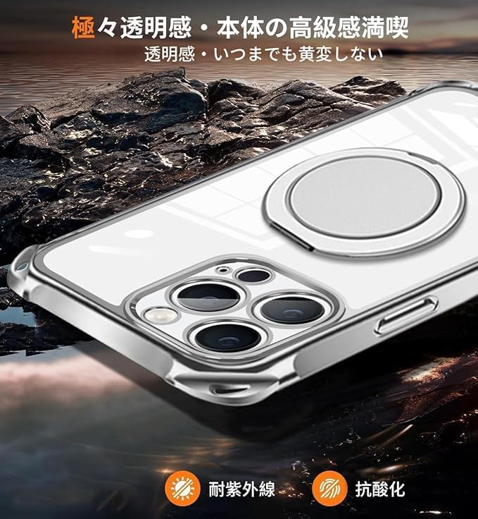 iPhone 17 Pro Max 用 ケース 縦横両対応 360 回転スタンド リング マグネット搭載 MagSafe 対応 ワイヤレス充電対応 い phone 17promax ケース 肩掛け 斜めかけ 縄掛け 耐衝撃 車載ホルダー 対応 ストラップ穴付き
