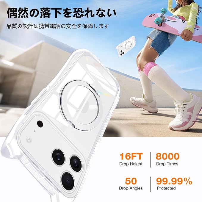 【超高耐衝撃性・極上の透明感】高品質なTPUとPCを使用、他の保護ケースよりも透明度が高く、スマホの崇高な美しさと原始的な美しさをファッショナブルな色彩で楽しむことができます。クリアケースの裏面に、家族やペットの写真、シールなどをいれて自分好みのアレンジできます。四角内部に防振クッションを搭載され、四角外部には物理耐衝撃構造設置することで、衝撃吸収性能を倍アップ!落下してもスマホをしっかりと守れます。圧倒的な耐衝撃性を誇り、スマホを全方向からしっかりと保護できす。(ご注意:長時間の黄変防止には太陽の直射を避けることと乾燥の環境を保つことが必要です。)