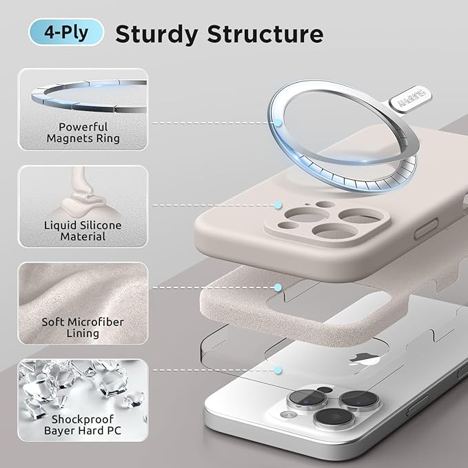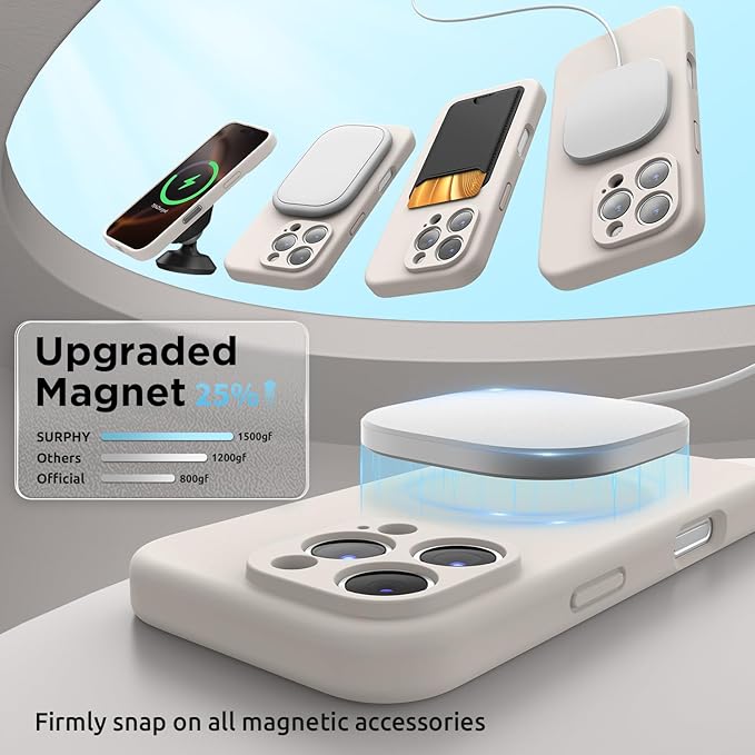 SURPHY iPhone 16 pro max用ケース シリコン MagSafe対応,6.9インチ対応(2024) 携帯ケース iphone16 pro max (カメラの全面保護) マグネット搭載 iPhone16 pro max用ソフトカバー(ストーングレイ)