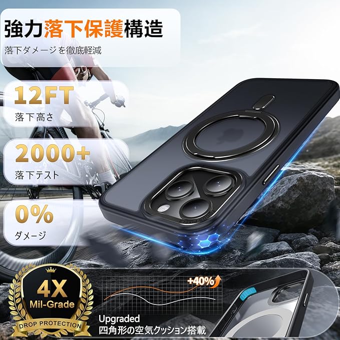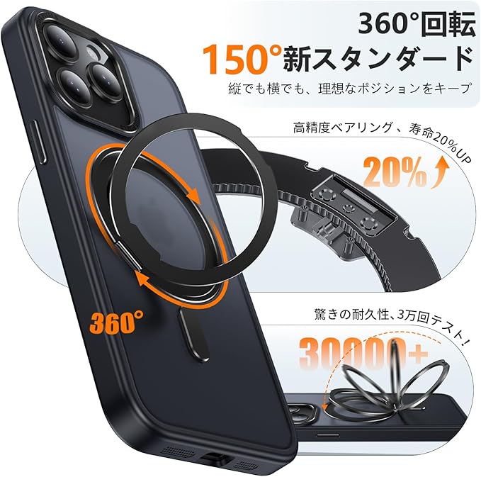 「MagSafe強力磁力・充電アップグレード」:内蔵された N52グレード強力マグネットは、従来品より 約10倍の吸着力 を実現。激しい振動のある車内でも安定して装着可能。MagSafe充電器や車載ホルダーに対応し、ズレることなく高速かつ安定した充電が可能です。⚠️ご注意:MagSafe充電器のみ対応、Qi規格のワイヤレス充電器には非対応です。