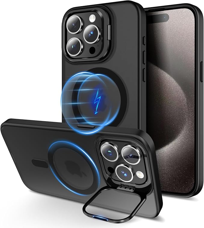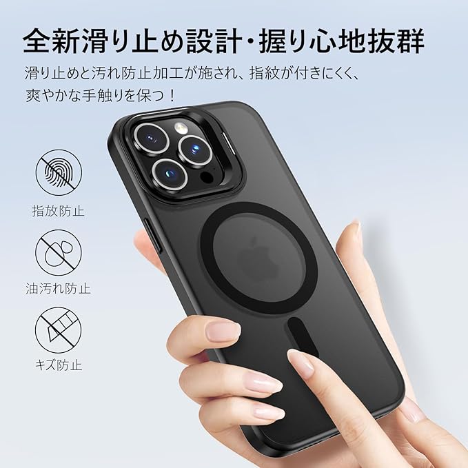iphone 15 pro max 用 ケース レンズスタンド付き 角度調整可能 アイフォン 15 pro max ケース Magsafe対応 いphone 15promax カバー 米軍MIL規格 耐衝撃 スマホケースiphone15 プロマックス カメラスタンド 軽量 スマホカバーiphone15プロマックス マット仕上げ 半透明 黄変防止 6.7インチ ブラック SHANGHAO