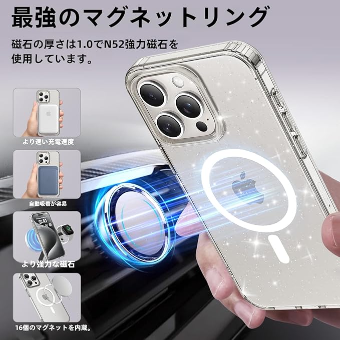 iPhone17 Pro Max 用 ケース クリア tpu MagSafe対応 マグネット搭載 いPhone17Pro Max スマホケース 独自のプロセスフラッシュチップ加工設計 滑り止め 傷つけ防止 指紋防止 透明 薄型 軽量 黄変防止 全面保護 耐久性 耐衝撃 米軍MIL規格取得 ワイヤレス充電 ストラップホール付き 携帯 アイフォン17Pro Max スマホケース