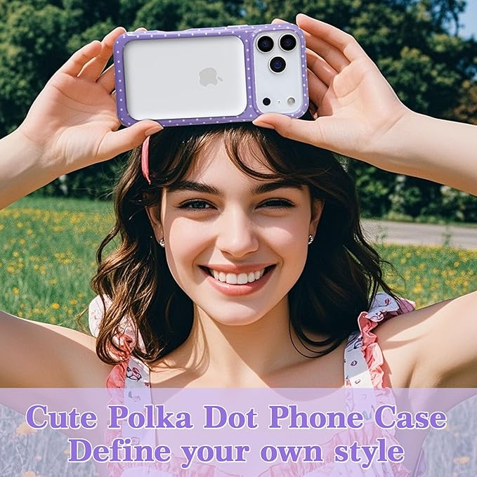 EYZUTAK 対応iPhone 17 Pro Max用マグネットケース MagSafe用のファッション キュート 水玉模様 スマホケース シンプルでシックな美学の水玉模様 スリムTPU保護カバー 女性・女の子向け - パープル