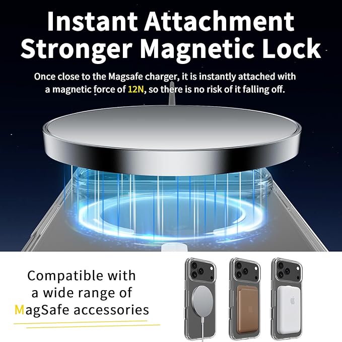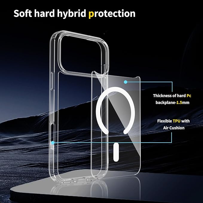 iPhone17 Pro Max 用 ケース クリア tpu MagSafe対応 マグネット搭載 いPhone17Pro Max スマホケース 滑り止め 傷つけ防止 指紋防止 透明 薄型 軽量 黄変防止 全面保護 耐久性 耐衝撃 米軍MIL規格取得 ワイヤレス充電 ストラップホール付き 携帯 アイフォン17Pro Max スマホケース
