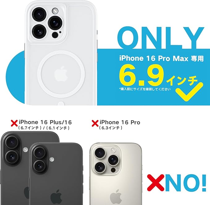 【革命的なグリップ & 黄ばみ防止技術】極上の肌触り、赤ちゃんの肌のようにすべすべ。特別配合の親肌コーティングで、思わずずっと触っていたくなる上質な感触。iphone16promax ケース微弧カーブデザインが手のひらにフィット。側面の微細凹凸で抜群のグリップ感と快適な持ち心地を実現。表面にはStainGuard防汚コートを基層に、撥油ナノ処理を追加した二重構造を採用。汗・皮脂による黄ばみを強力抑制し、半透明素材も美しく持続。ホワイトいphone16pro max ケースの清潔感を長持ちさせるのはもちろん、鮮やかホットピンク、ウィンターブルー、ミスティックパープル、ダークブラックの4色展開。指紋がほぼ残らない上品なマット質感で、あらゆるシーンで高級感を発揮。StainGuard防汚+撥油ナノ+耐水の三重コーティングで、常に滑らかなタッチ感を保持。※iphone16プロマックス ケース購入特典:カスタムカラーボタン(青/オレンジ)セット。