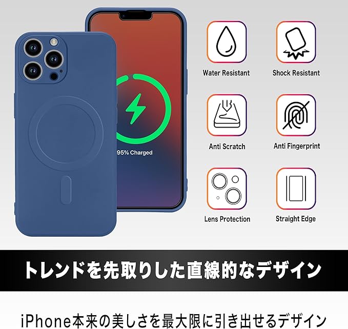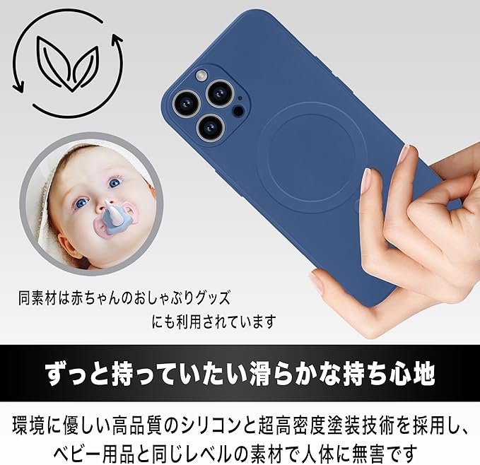 [高品質リキッドシリコン] iphone 13 Pro Max マグネット搭載 シリコンケースは環境に優しい食品グレードのリキッドシリコーンで作られ、良い肌触りを兼ねています。異臭なし、色あせない、指紋・傷防止できます。汚れが付いても、濡れた布で簡単に取れます。