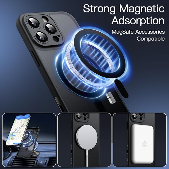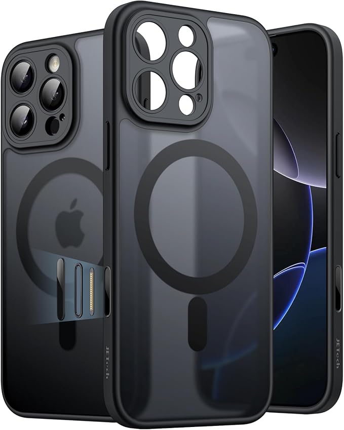 JETech iPhone 16 Pro Max 6.9インチ用 マグネットケース カメラコントロールボタン MagSafeに対応 半透明のマット背面 薄型 耐衝撃 フォンカバー (ブラックチタニウム)