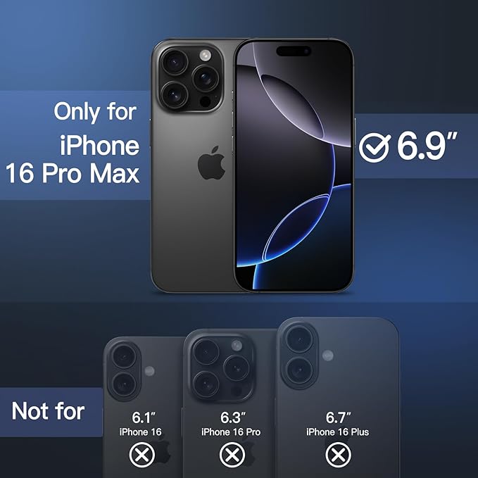 [完璧にフィット] iPhone 16 Pro Max 6.9インチ用に完璧に設計されており、おデバイスがかさばることはありません。注:iPhone 16 / 16 Plus / 16 Proには対応していません。完璧に整列したカットアウトにより、カメラ、スピーカー、ボタン、その他のポートに完全にアクセスできます