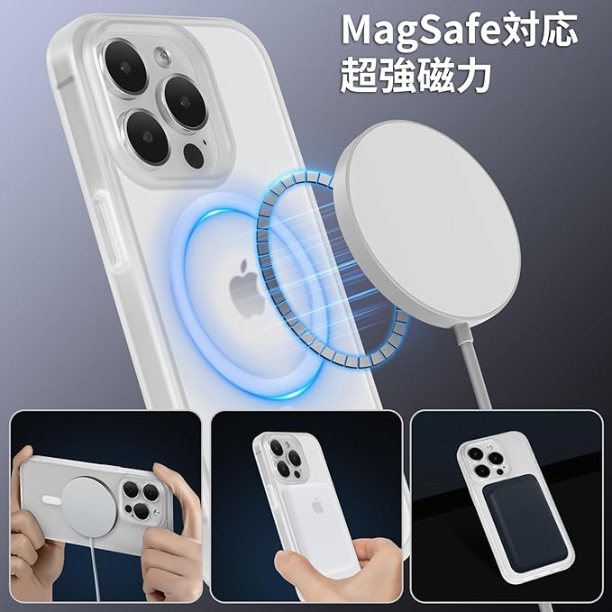 Magsafe充電対応:このiPhone 14 Pro max用ケースマはマグネットを内蔵しているので、外観を損なわずに便利なマグネット技術を楽しむことができます。すべてのMagSafeアクセサリー対応し、より安全、安定、急速なワイヤレス充電体験をもたらします。