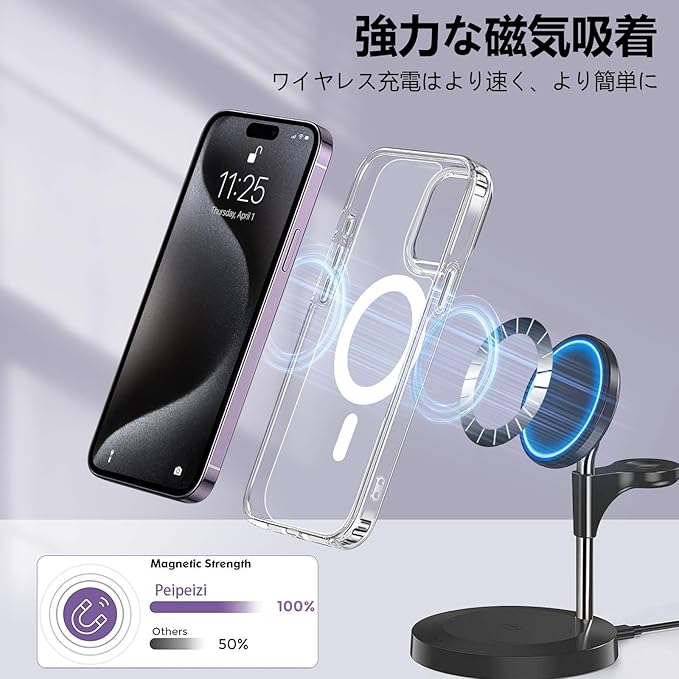 【対応機種】この透明で強力な磁気電話ケースは、iPhone 15 Pro Max用の と完全に互換性があり、iPhone 15 Pro Max用に特別に設計されており、完璧にフィットします。注意:ご購入前にモデルをご確認ください。