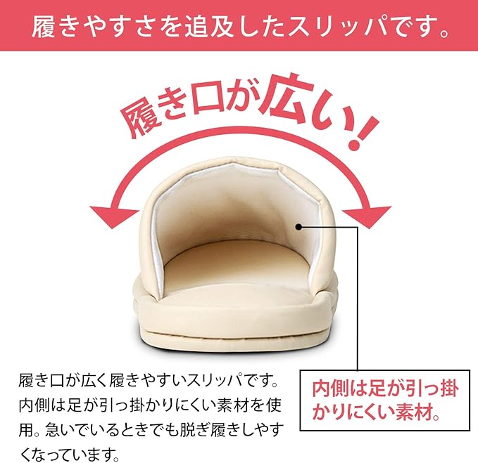 内側は足が引っ掛かりにくい素材を使用。急いでいるときでも脱ぎ履きしやすくなっています。