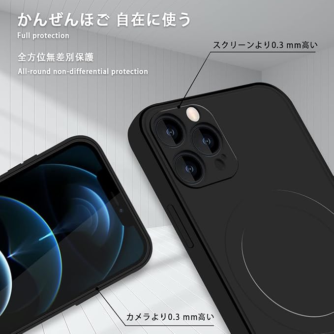 for iPhone 12 Pro Max 用の ケース MagSafe対応 スマホケース シリコン 耐衝撃 TPU 軽量 カバー レンズの全面保護 シリコン ストラップホール付き 薄型 傷つき防止 落下防止 防塵 6.7インチ(ブラック)