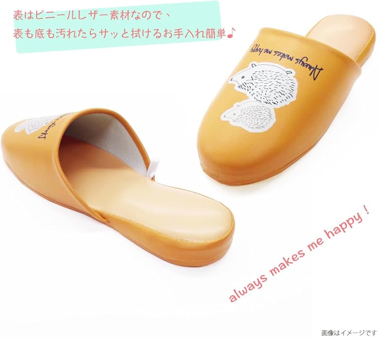 オクムラ スリッパ お手入れ簡単ふきふきビニール ハリネズミ フリーサイズ 濡れてもサッと拭ける お手入れ簡単 底は滑りにくいPVCレザー