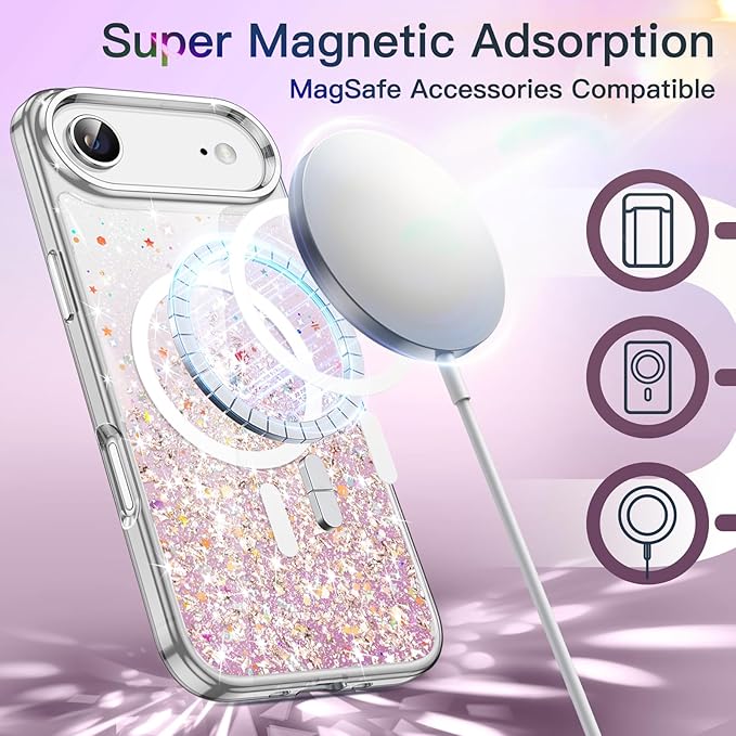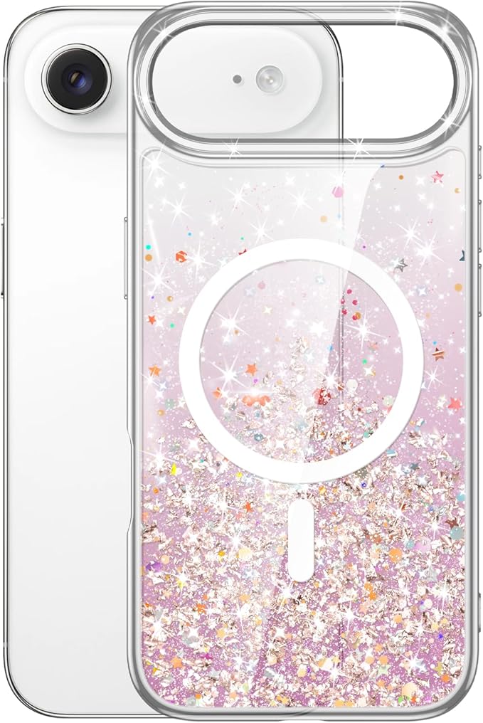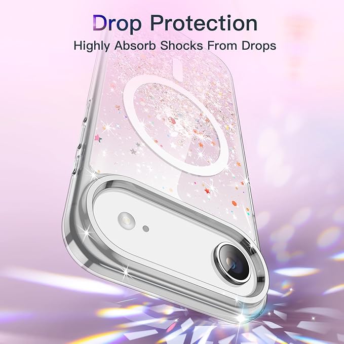JETech iPhone Air用 キラキラ ケース MagSafeに対応 女性用 クリア かわいい ブリンブリン ピカピカ 耐衝撃 マグネット式 スマホカバー 6.5インチディスプレイ (ピンク)