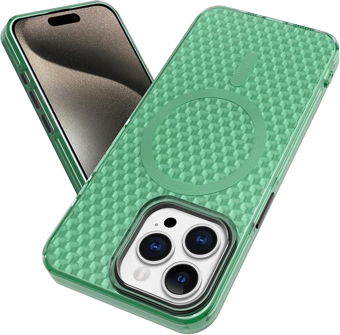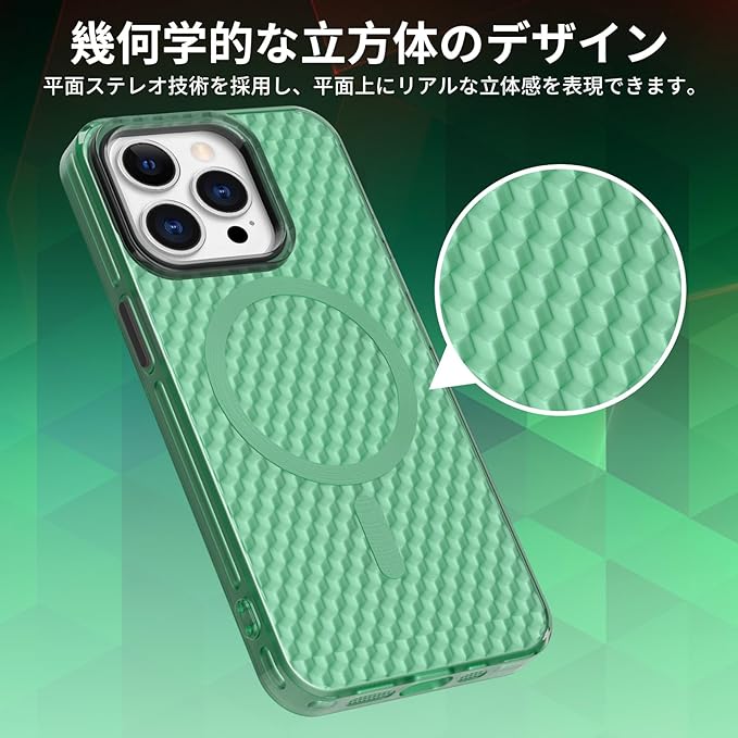 iPhone 15 Pro Max ケース Magsafe対応 【立体デザイン】 耐衝撃 スマホケース アイフォン 15 Pro Max 米軍MIL規格 ワイヤレス充電対応 落下防止 ストラップホール付き 傷防止 滑り止め 軽量 おしゃれ (グリーン)
