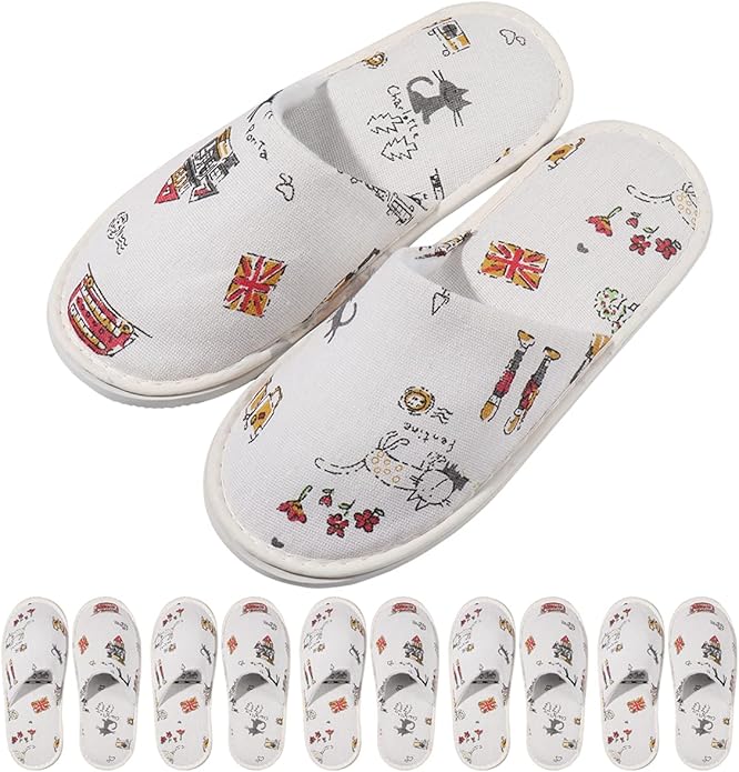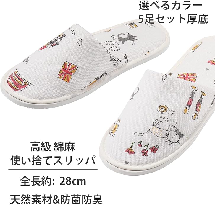 [CQQDOQ] スリッパ 使い捨て 室内スリッパ 来客用 28cm 綿麻 軽量 厚底 プリントのスリッパ 滑り止め エステ ホテル用 業務用 旅行用 自宅用 5足入セット 個包装 | funshop