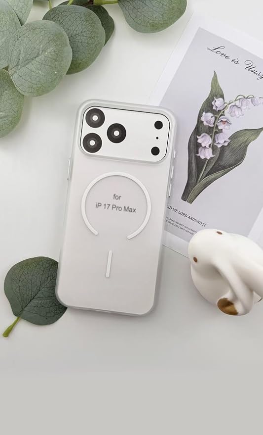 【MagSafe対応】For iPhone 17 Pro Max ケース 薄型 半透明 マット|PCマットケース 1.35mm薄型 黄ばみ防止 メタルサイドボタン ワイヤレス充電対応|17 Pro Max 半透明(ホワイト)