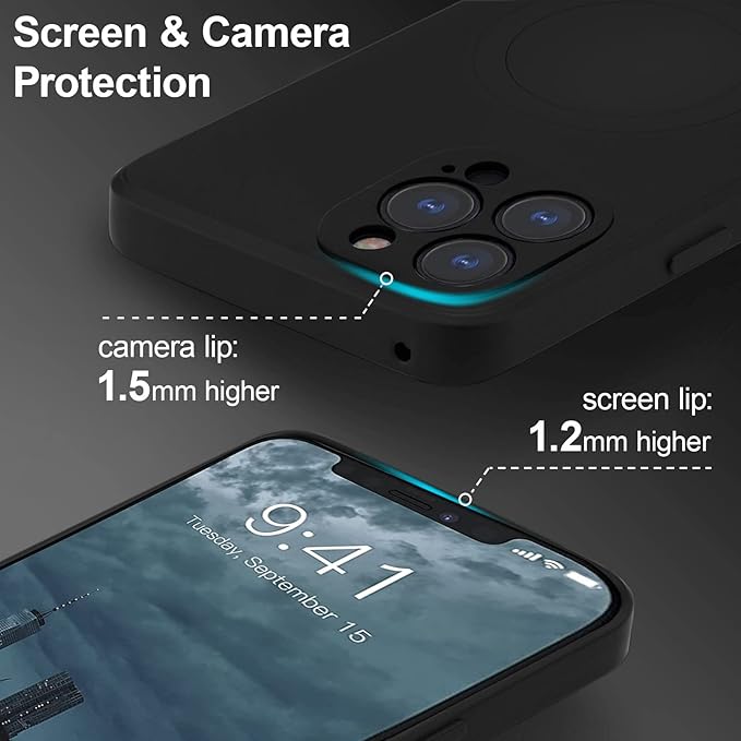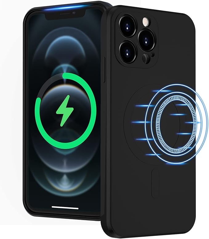 UEEBAI 対応 iPhone 15 Pro Max 用の ケース ソフト シリコン ケース MagSafe対応 ワイヤレス充電 薄型 軽量 耐衝撃 バンパー スマホケース – ブラック
