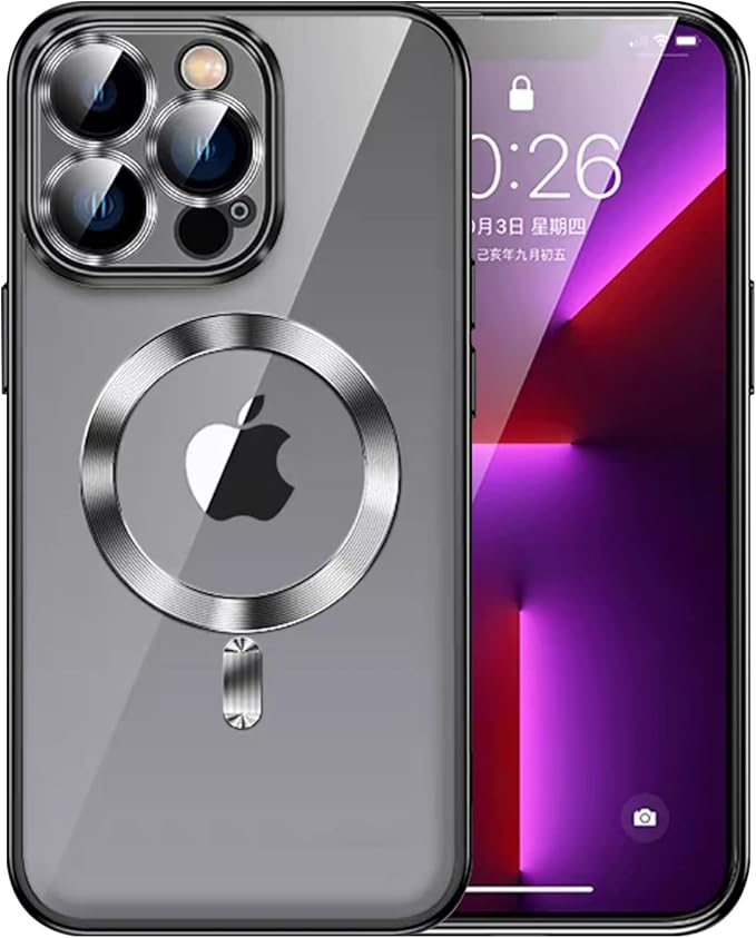 iPhone 13 Pro Max ケース ハイブリッドケース HaloLock付き MagSafe対応 磁気充電 iphone13プロマックスケース アップグレードされた電気メッキの ソフトシェル 米軍MIL規格 SGS認証 衝撃保護 傷に強い背面 クリア 黄変しにくい ストラップホール付き 6.7インチ ブラック