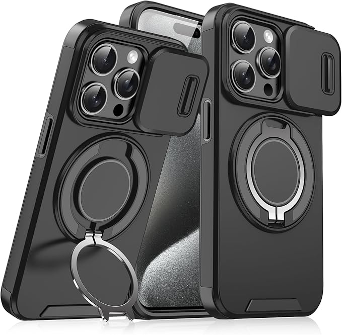 いphone13 Pro Max 用 ケース Magsafe対応 PC + TPU 二重保護 カメラの保護 落下防止 米軍MIL規格 耐衝撃 iPhone13promax対応 スマホケース リング付き スタンド付き ブラック 黑