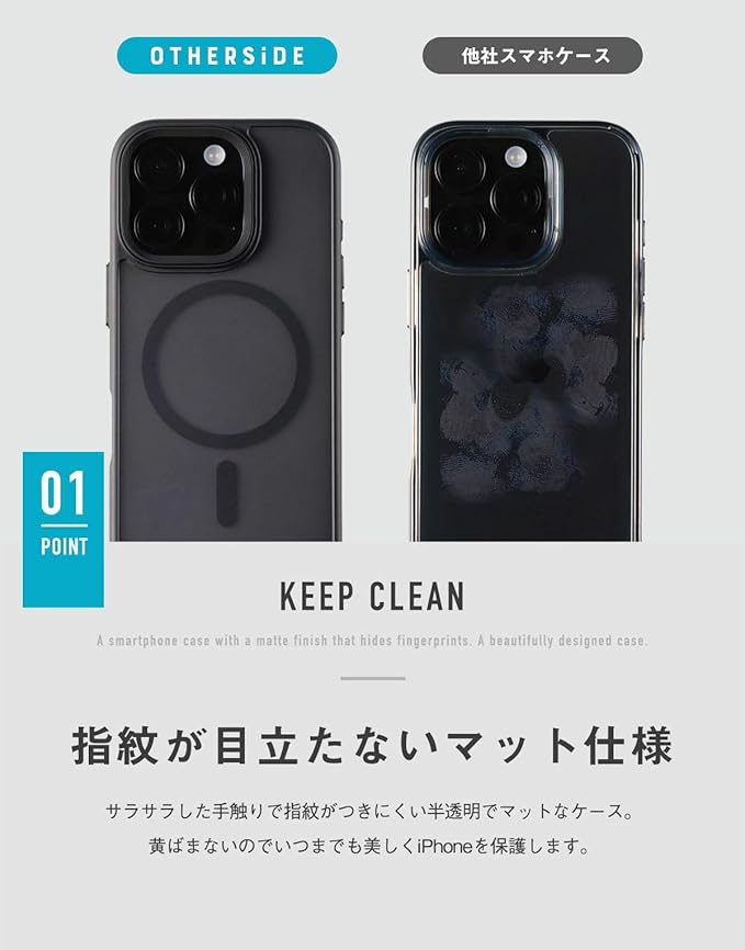✅️【指紋が目立たないマット仕様】サラサラ下手触りで指紋がつきにくい半透明のマットケースです。